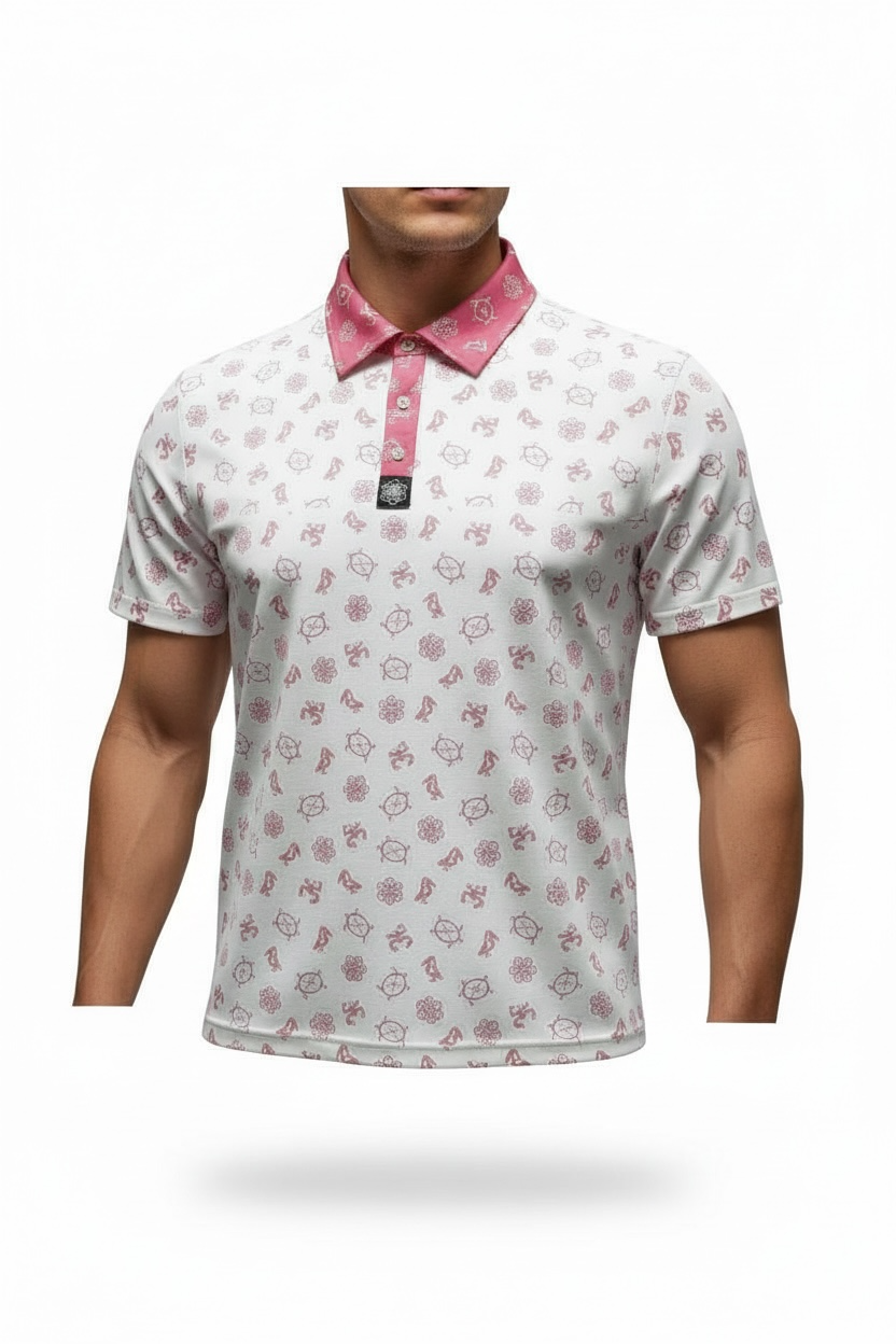 Inspired by island life and designed for the modern golfer, the Taíno Golf Isla Collection blends performance, culture, and unmistakable style. Featuring an all-over pattern of Taíno-inspired symbols, this polo reflects movement, navigation, and Caribbean heritage—reimagined for the fairway.